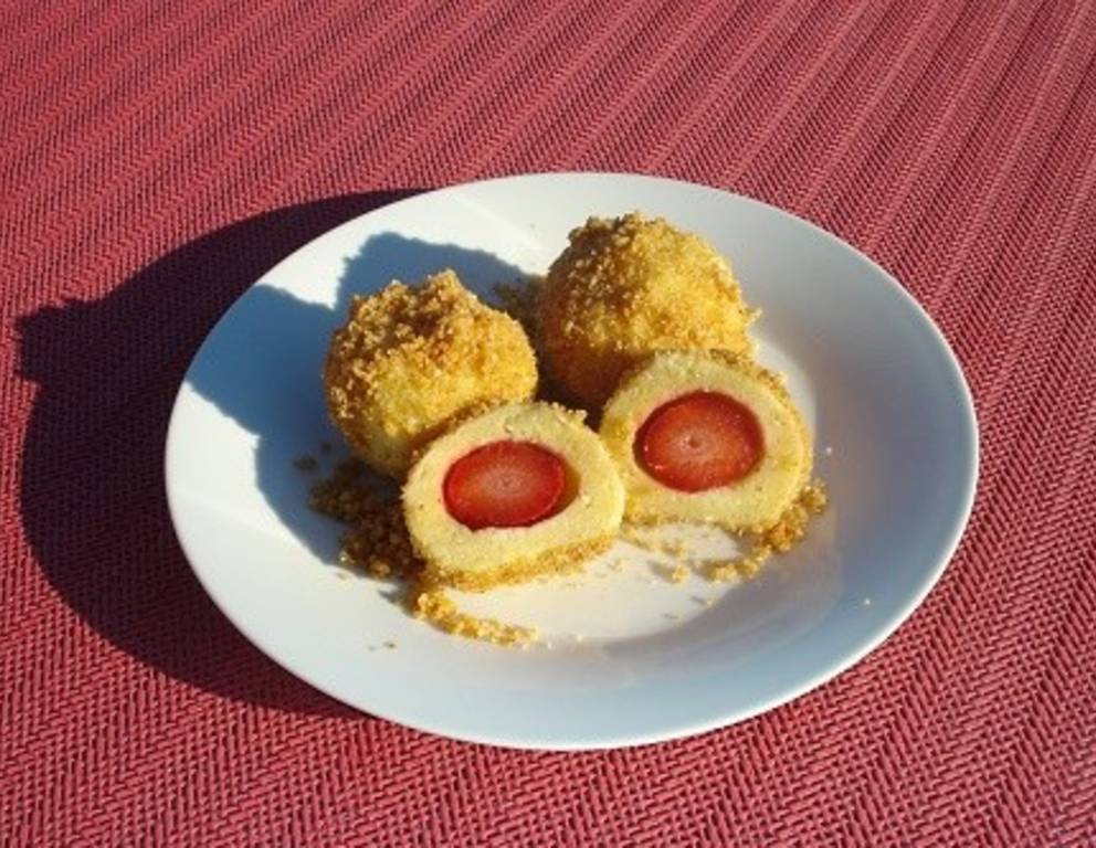 Die Erdbeerknödel schmecken statt mit Bröseln auch mit Mohn hervorragend.