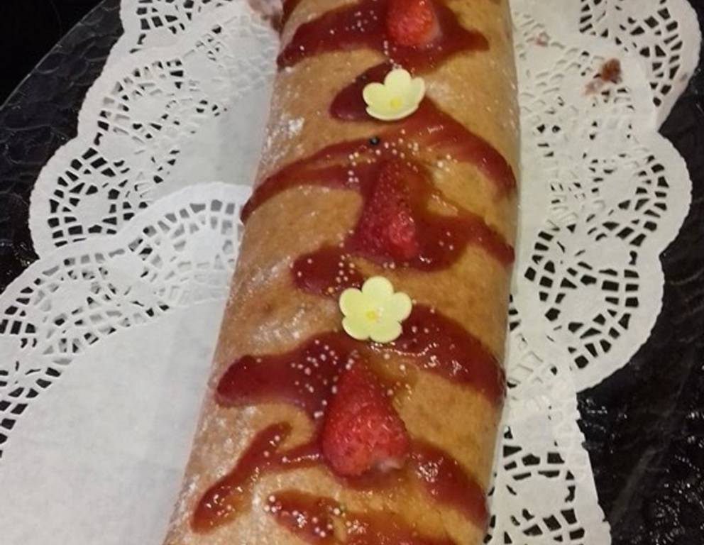 Sie können die Erdbeerroulade auch sehr gut mit anderen Obstsorten, wie zum Beispiel Ananas oder Pfirsich, zubereiten.