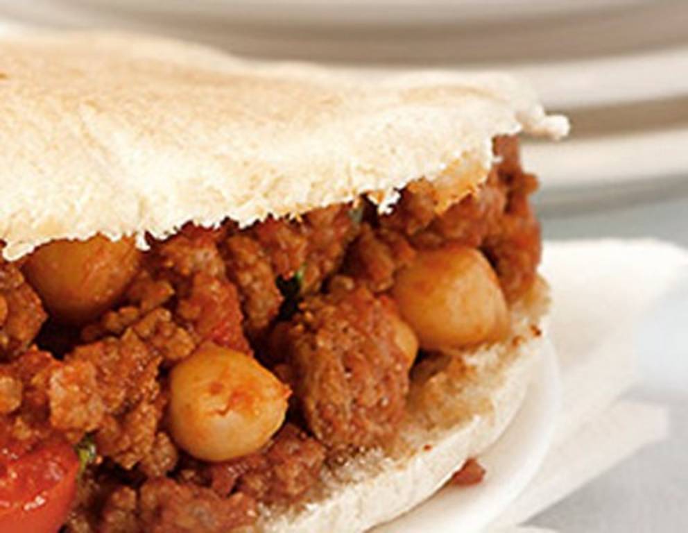 Pitabrot mit Lammragout und Kichererbsen schmeckt auch mit faschiertem Rindfleisch.
