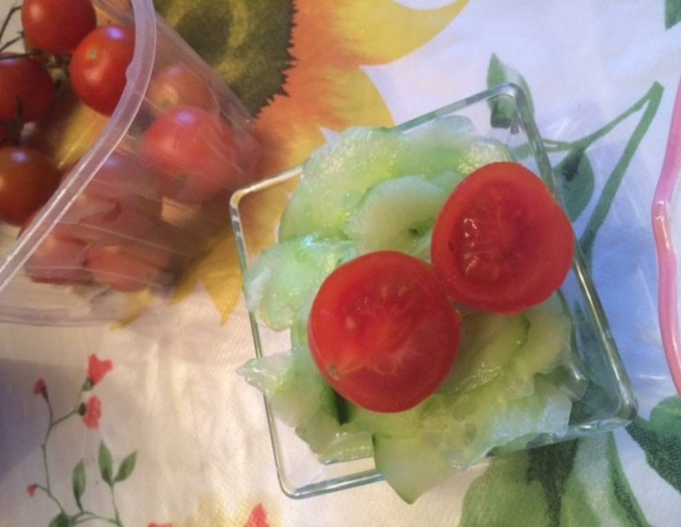 Den Gurkensalat vor dem Servieren noch mit kleinen Paradeisern garnieren.