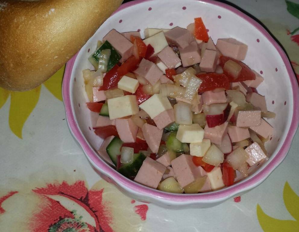 Den Wurstsalat kann man mit beliebigen Zutaten variieren. Statt normaler Extrawurst ist auch Putenextra oder auch mal andere Wurstreste passend. Mit frischen Kräutern rundet man den Salat noch perfekt ab.