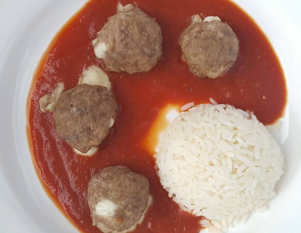 Faschierte Bällchen schmecken auch sehr gut, wenn man sie mit Feta bzw. Schafskäse füllt. Dazu passt sehr gut Reis und auch Rucola Salat passt hervorragend. Man kann die Bällchen auch auf Holzstäbchen stecken und sie als Fingerfood servieren.