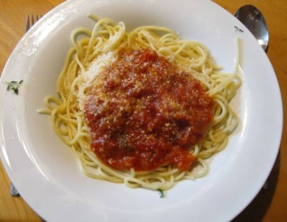 Zu den Spaghetti mit scharfer Tomatensauce passt wunderbar ein grüner Salat. Die Schärfe ist individuell selbst auf den eigenen Geschmack abstimmbar.