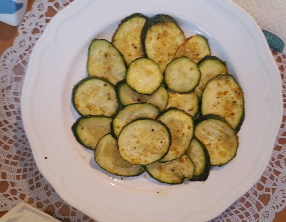 Man kann die Zucchinichips auch in einer normalen Fritteuse oder im Topf zubereiten. Dafür einfach Öl erhitzen und die ungewürzten Zucchinischeiben einige Minuten im Öl frittieren.