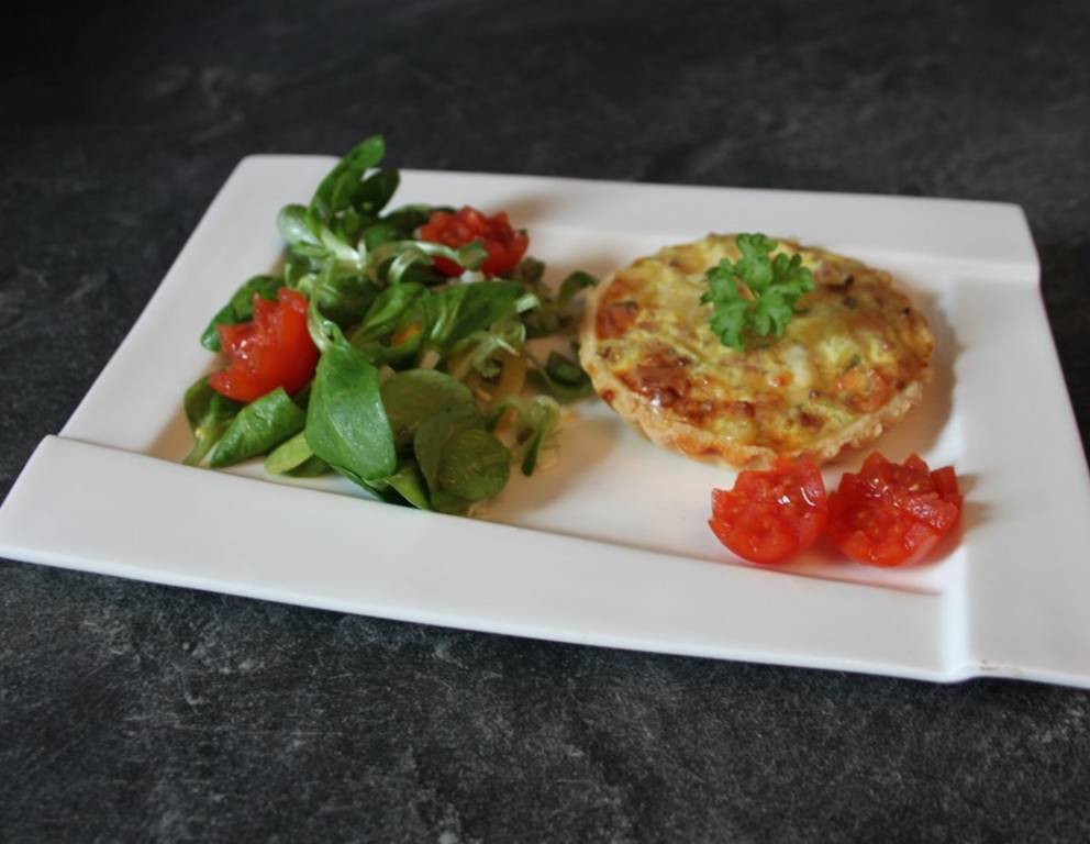 Die Quiche Lorraine mit Vogerlsalat als Vorspeise genießen.