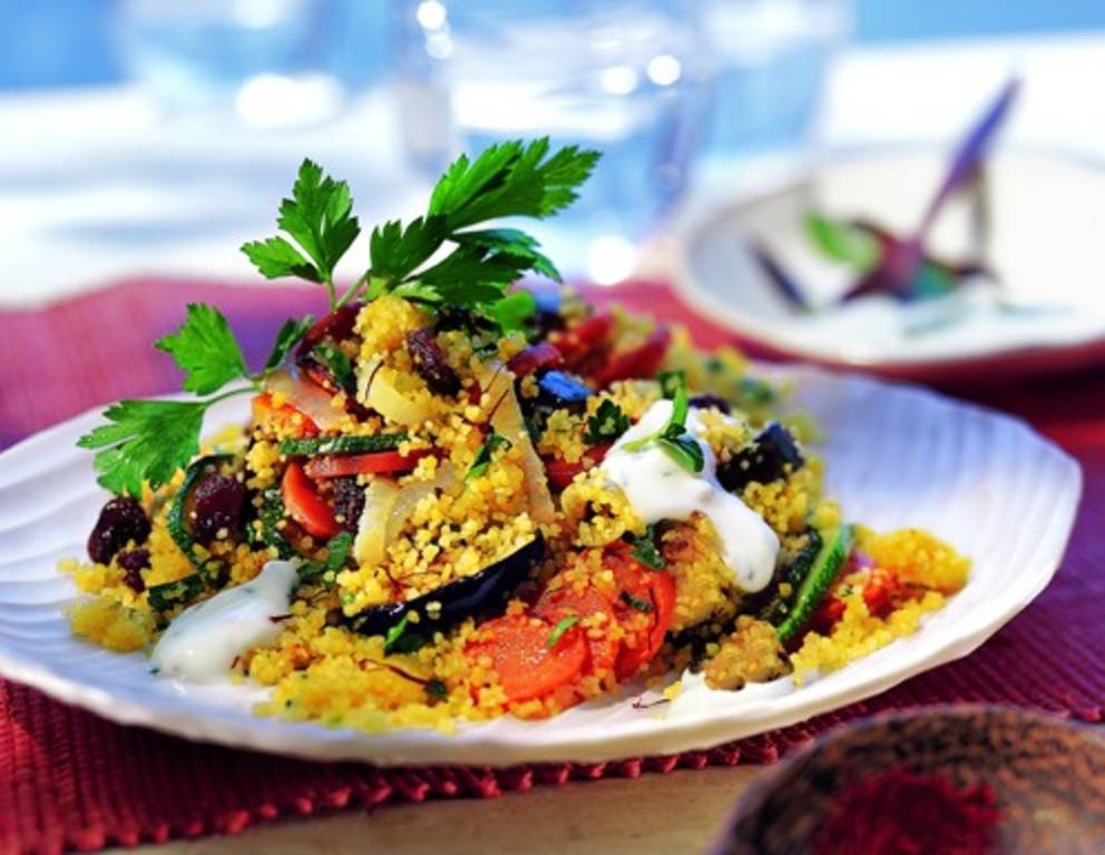- Joghurt mit gehackter Minze, Salz, Zimtpulver, Paprikapulver verrühren. Couscous mit einem Holzlöffel vorsichtig umrühren, Mazola® und gehackte Petersilie unterrühren und auf einer Platte oder auf Teller anrichten. Zum Couscous-Salat die Joghurtsoße servieren.