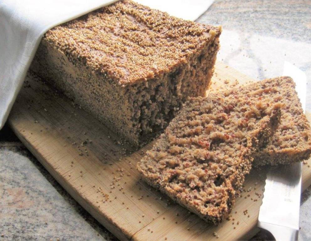Das Vollkornbrot mit Quinoa, Amaranth und Chia braucht keine anderen Gewürze, die üblicherweise in Brot sind, da rotes Quinoa einen intensiven, angenehmen Eigengeschmack hat, der sowohl mit Süßem als auch mit Pikantem harmoniert.