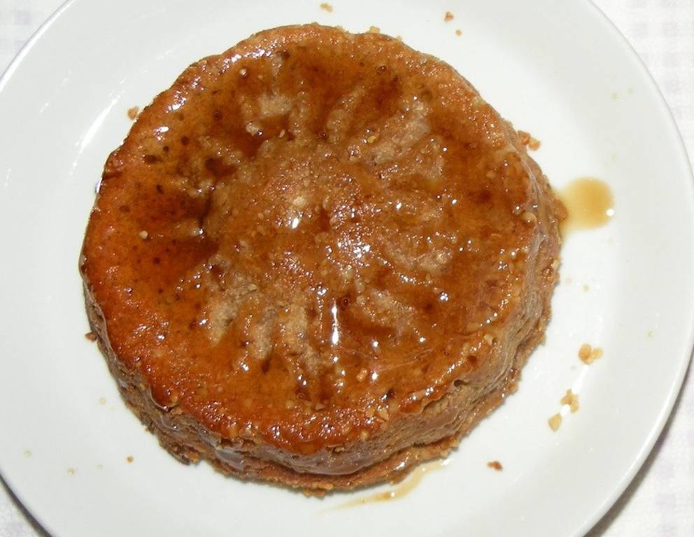 - Den Pudding bei 160 Grad Heißluft etwa 50 min langsam backen. Vor dem Servieren den Pudding aus der Form stürzen und mit 2 EL Ahornsirup übergießen.