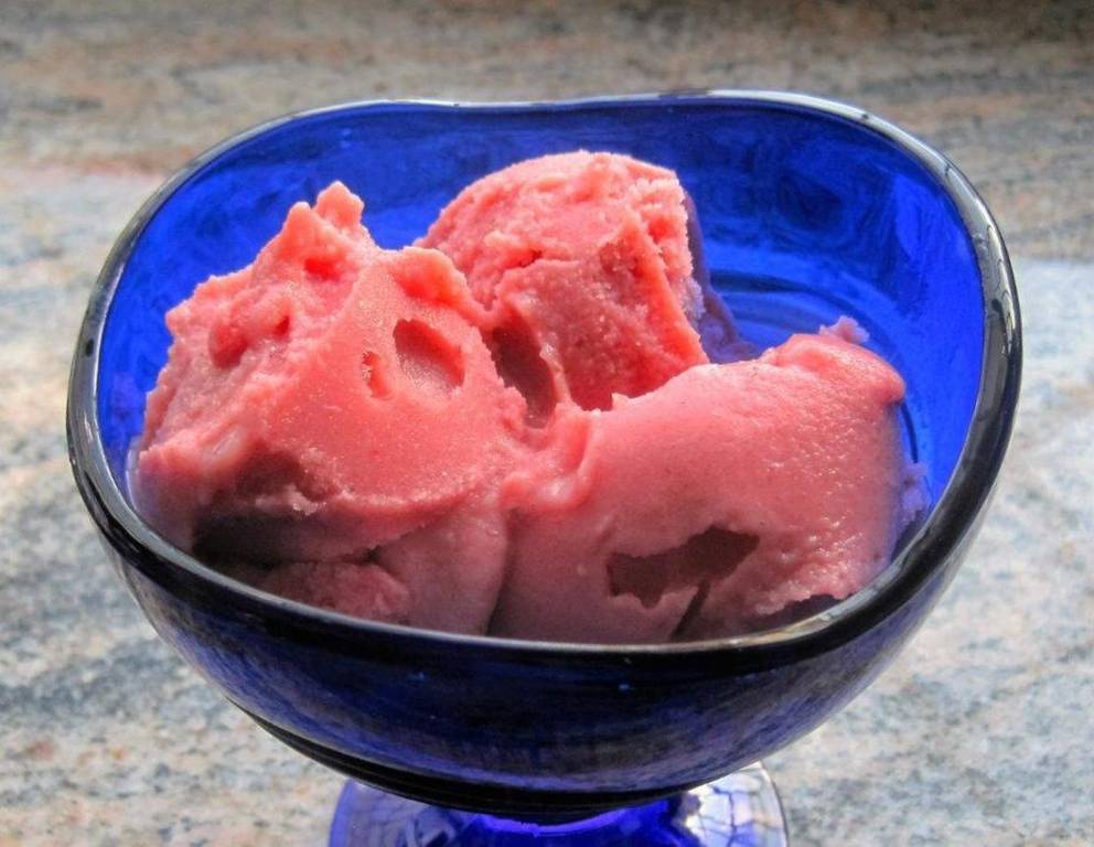 - Wenn alles fein gemixt ist, das Eis in einen Becher füllen und ca. 2 Stunden im Tiefkühler durchfrieren lassen. Vor dem Servieren kann man das Eis mit Erdbeerstückchen, Schokostreuseln oder Ähnlichem dekorieren.