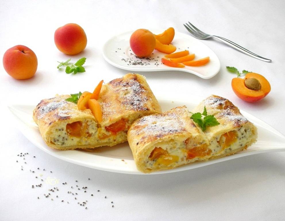 Den feinen Marillenstrudel mit Chiasamen kann man anstatt mit Marillen auch mit frischen Erdbeeren oder Kirschen zubereiten. Es schmeckt kalt und warm vorzüglich.