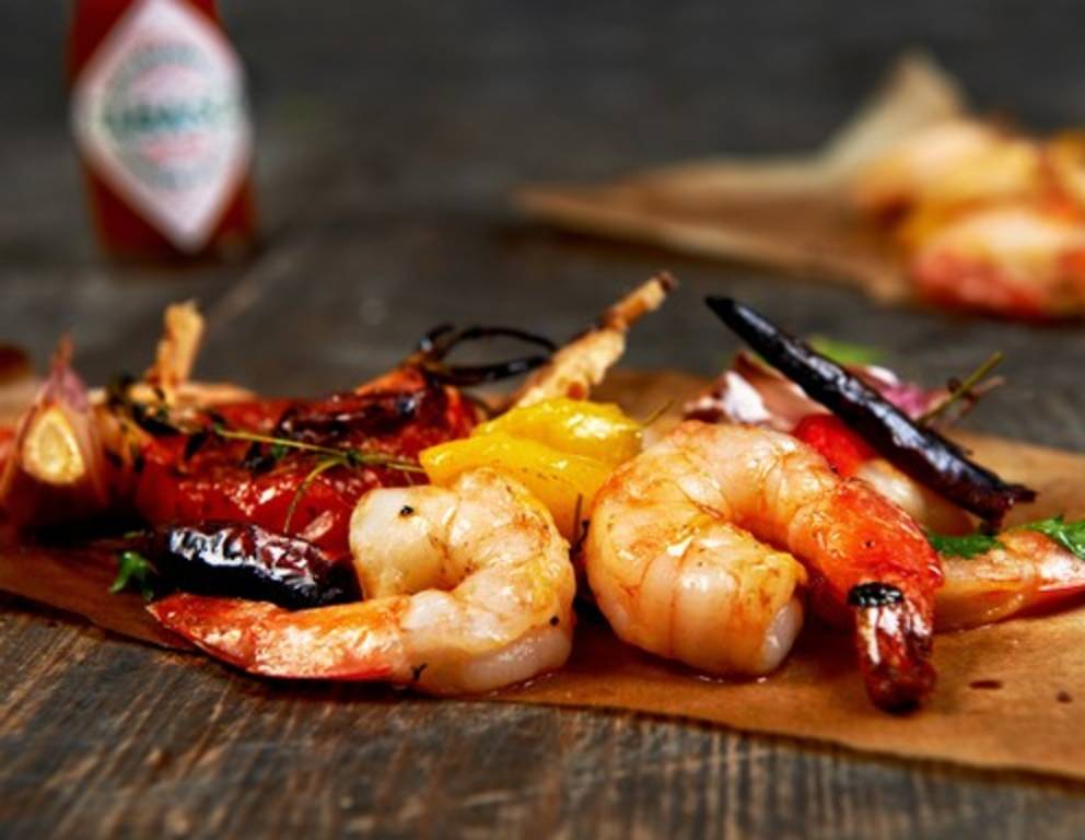 - Zunächst Garnelen putzen, waschen und trocken. Mit Zitronensaft, TABASCO® Pepper Sauce und fein gehackten Knoblauch marinieren.