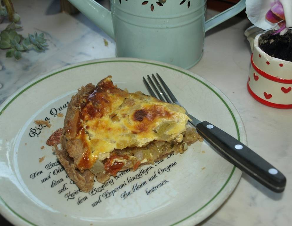 Wenn die Zucchiniquiche beim Backen oben zu schnell bräunt mit Pergamentpapier abdecken.