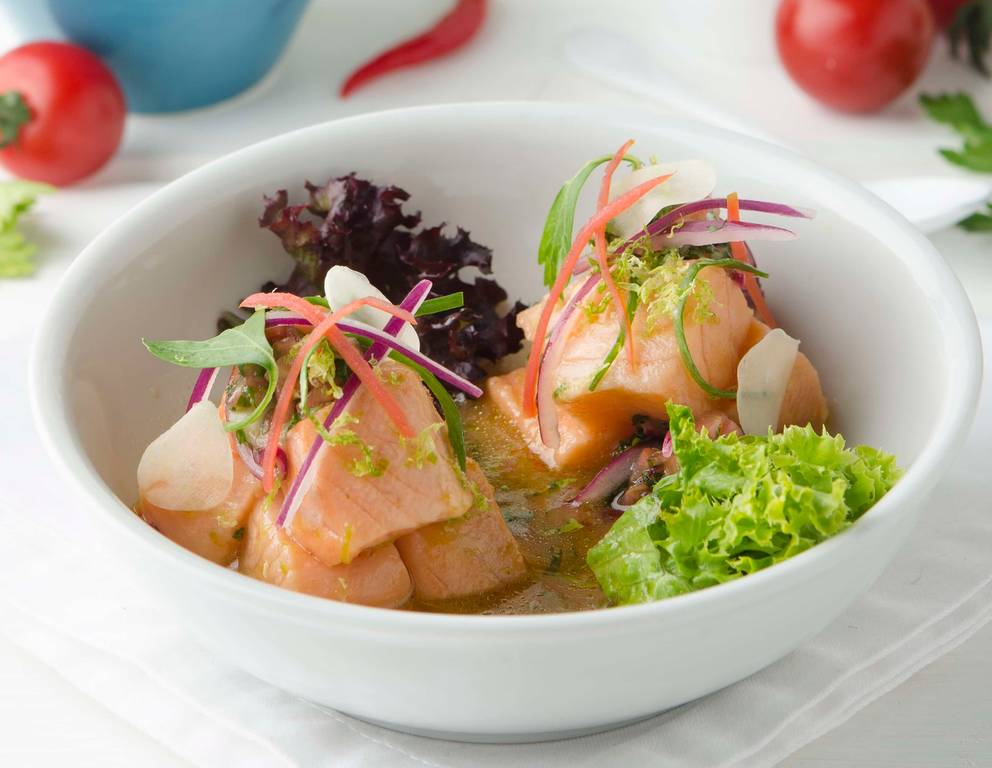 - Fisch aus der Marinade heben, abtropfen lassen und mit der Salsa auf Tellern anrichten. Sofort servieren.