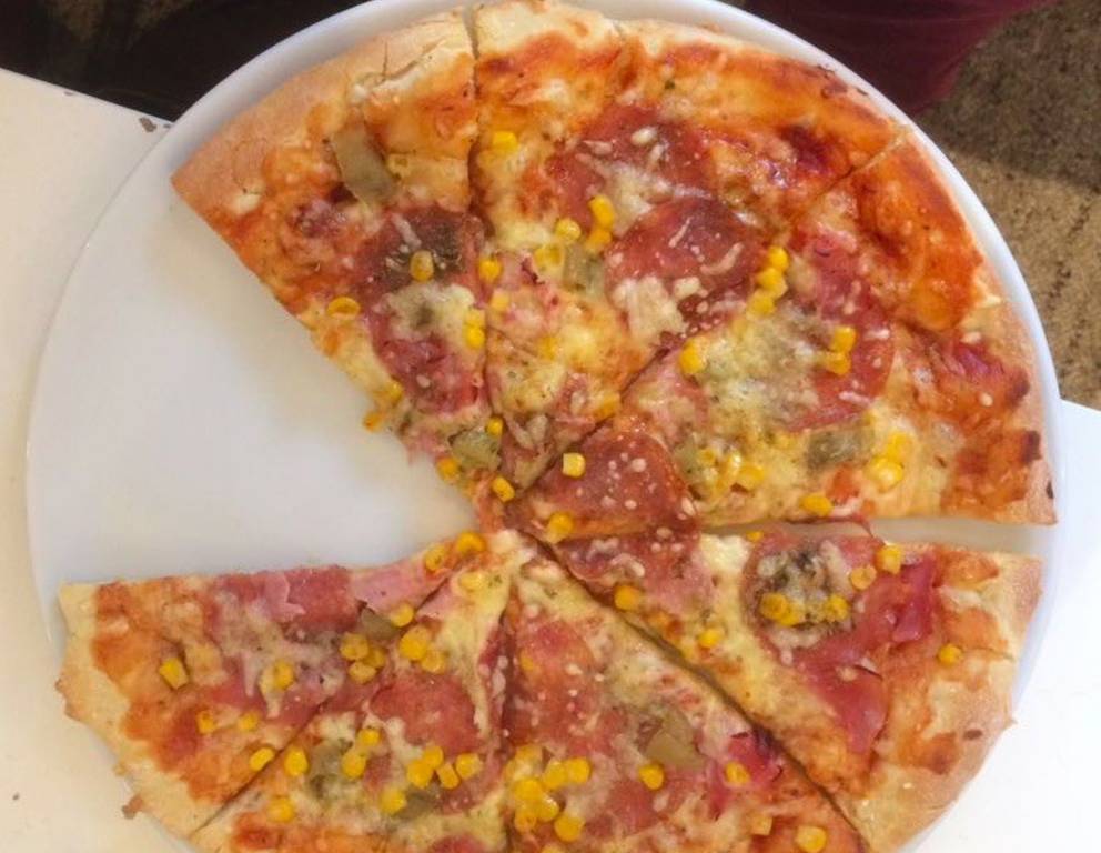 - Mit Käse, Salami, Speck (wer möchte kann auch Schinken nehmen), Pfefferoni und Mais belegen und mit Pizzagewürz bestreuen.