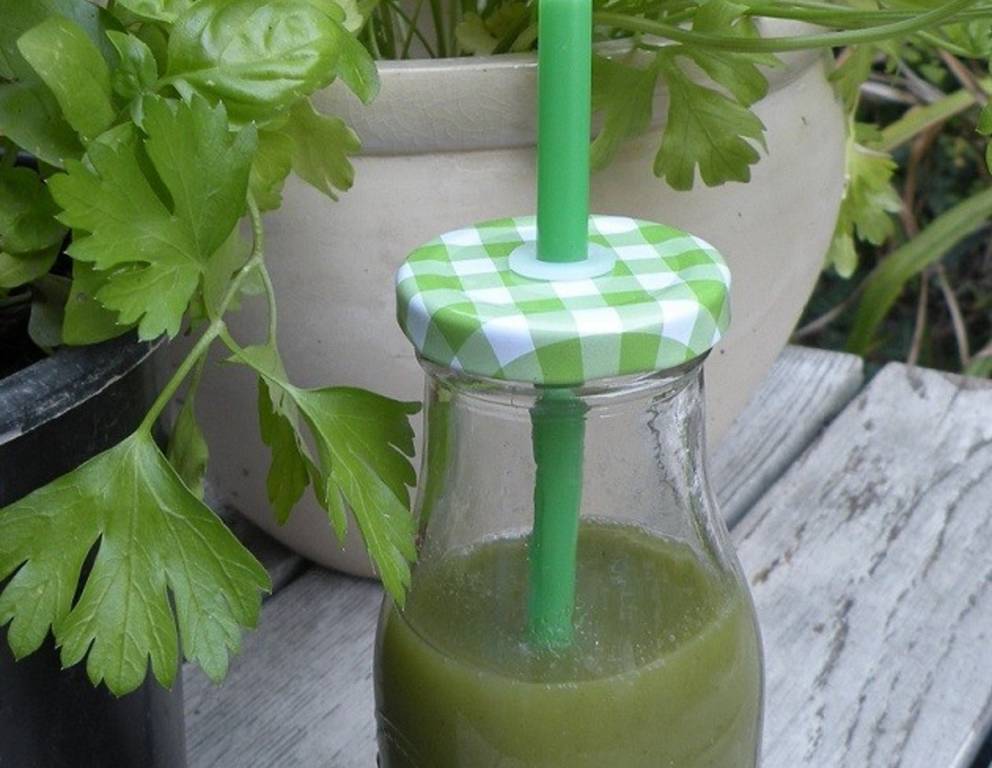 Wer möchte, kann statt Traubensaft auch einen anderen Saft für den Basilikumsmoothie probieren. Birne würde evt. gut passen.