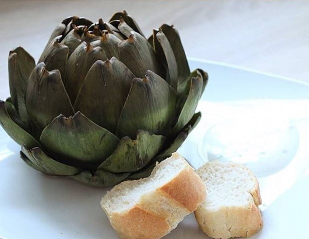 - Sobald die Artischocken fertig sind, abtropfen lassen und zusammen mit dem Knoblauchdip und einer Scheibe Baguette servieren.