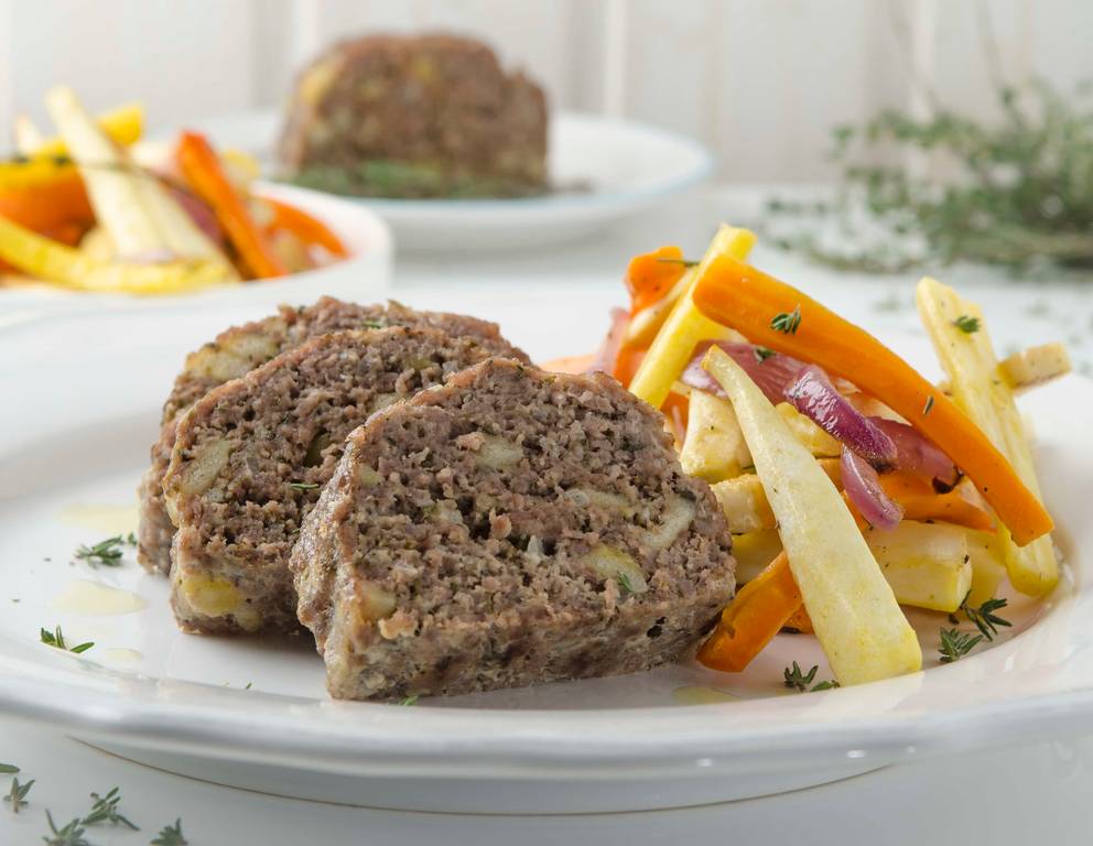 Zum falschen Hasen mit Wurzel-Schmorgemüse passen sehr gut Erdäpfelstampf.