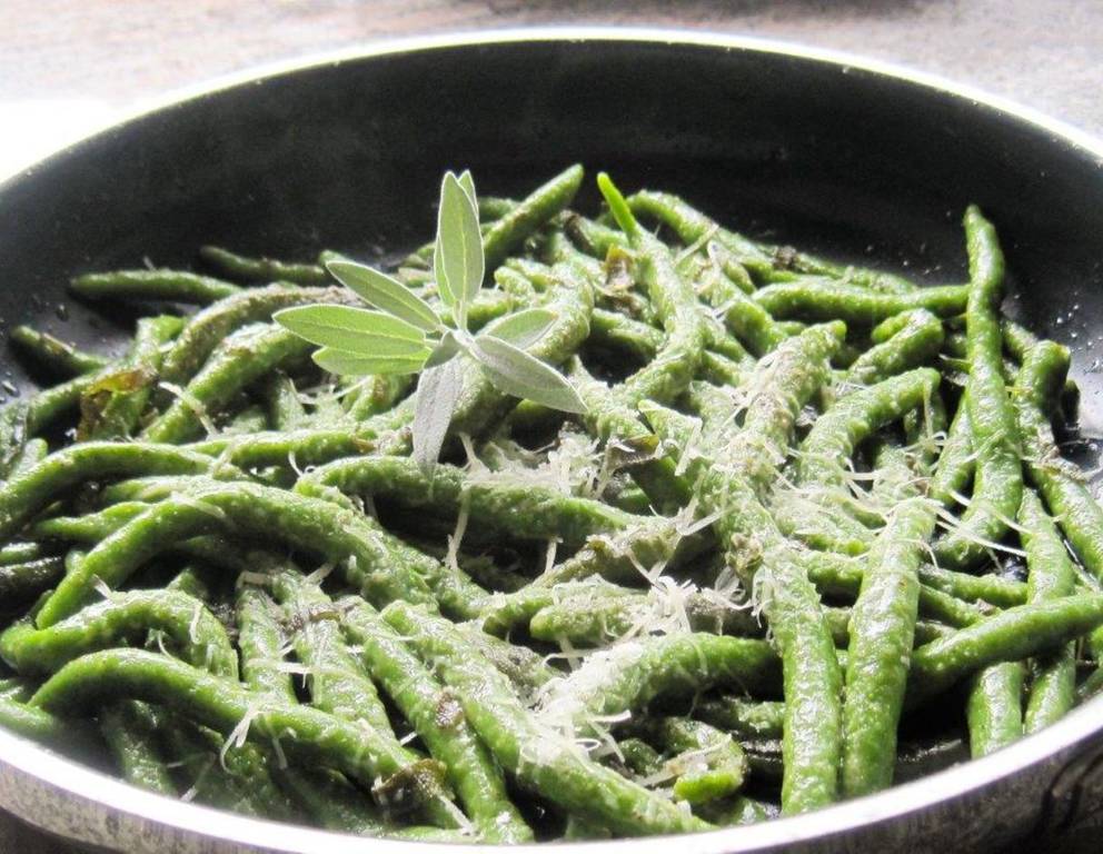 - Inzwischen die Salbeiblätter nudelig schneiden. Butter in einer großen Pfanne schmelzen und die Salbeiblätter darin braten, bis sie knusprig sind.