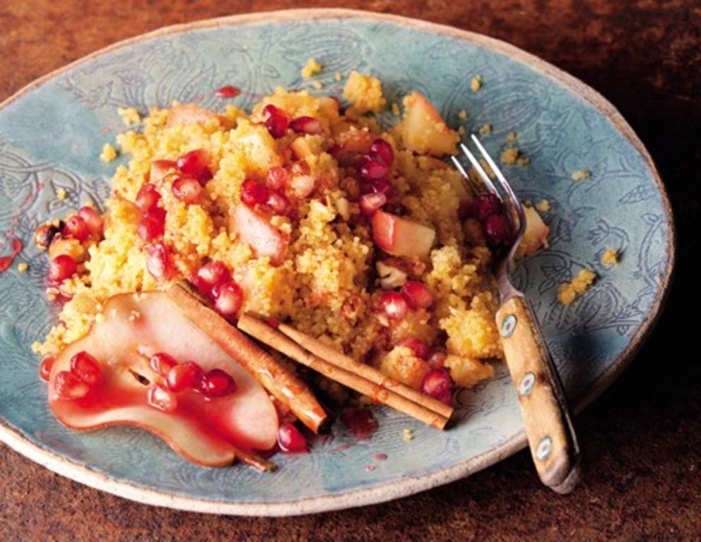 Das Birnen-Couscous mit Granatapfel kann beliebig variiert werden. Mit verschiedenen Nüssen, anderen Früchten und Gewürzen, ein vielseitiges Gericht für jeden Tag.