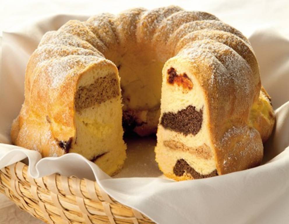 Wer keine Rosinen mag, lässt sie in der Topfenfülle für den Patzerlgugelhupf einfach weg.