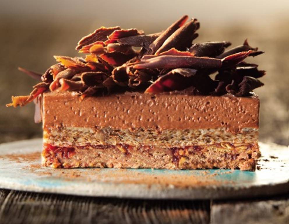 - Für die Schokoladecreme das Ei im Schneekessel über einem Wasserbad warm schlagen. Die Bitterkuvertüre grob hacken und auflösen, zur Eiermasse geben, dann verrühren und den Rum untermischen. Dann 3 EL leicht geschlagenes Schlagobers unterheben und verrühren, das restliche Schlagobers unterheben, vermischen und die Masse auf dem Haselnussboden verteilen. Glatt streichen und 5 Stunden kalt stellen.