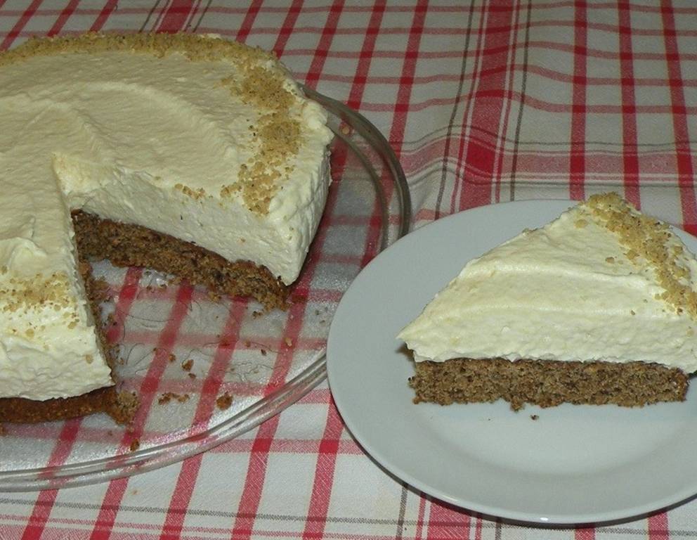 - Eischnee und andere Zutaten mit einem Spatel untereinanderziehen. In eine gefettete Tortenform von 26-28 cm Durchmesser streichen und bei 180 Grad etwa 45 min. backen. Stäbchenprobe machen.