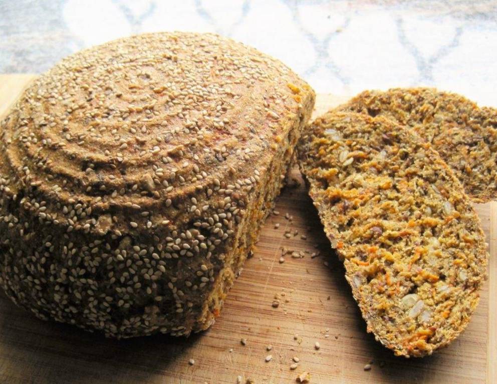Hirsemehl lässt sich mit Hilfe eines Zerhackers leicht selbst herstellen. Das fertige Karottenvollkornbrot wiegt ca. 1 kg.