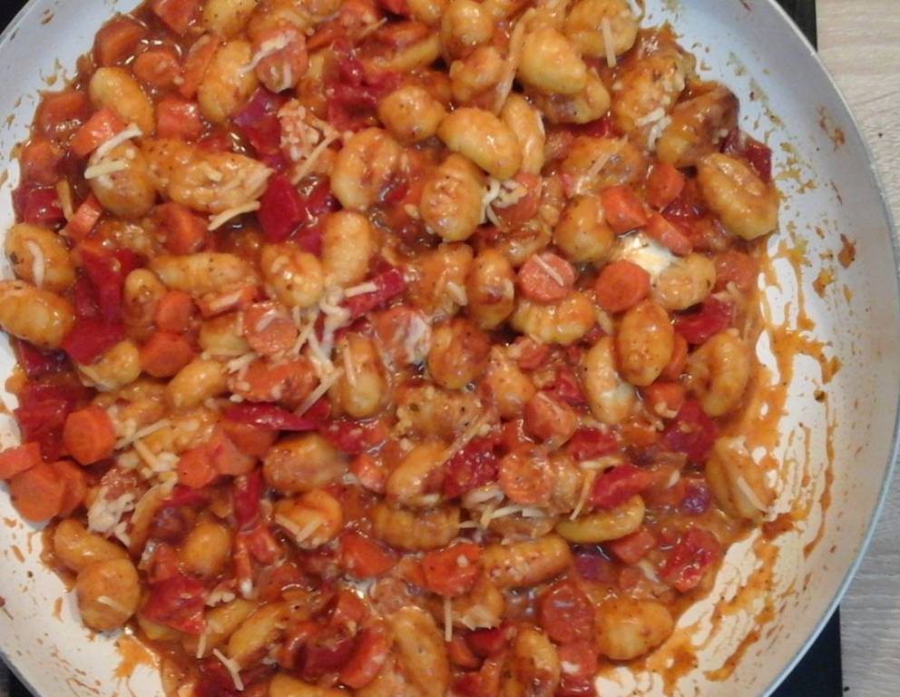 Wem das Schlagobers und der Käse zuviel sind, macht die Gnocchi mit Paprika und Karotten einfach ohne und gibt nur einen Klecks Crème fraiche darüber und etwas Käse. Der Käse kann nach Belieben variiert werden.