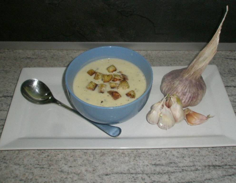 - Mit gewürfelten Weißbrot in Butter und Knoblauch geröstet als Einlage servieren.