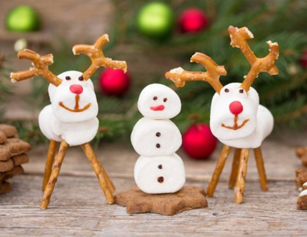 Die weihnachtlichen Marshmallow Figuren lassen sich ganz beliebig nach eigenem Geschmack kreieren. Die Augen der Rentiere kann man auch einfach mit Schokoladeschrift daraufmalen. Wenn man Zahnstocher verwendet, nicht vergessen, darauf hinzuweisen! Vorallem bei Kindern.