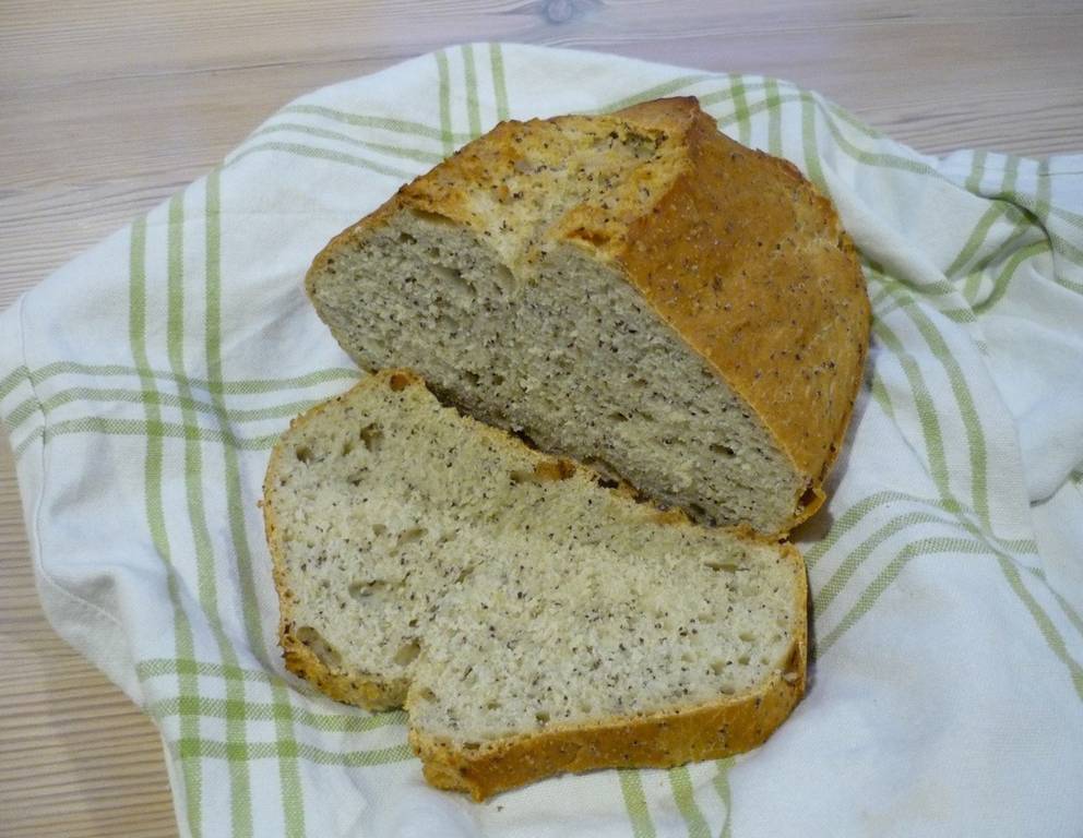 Das Weißbrot mit Mohn ist besonders saftig. Wer möchte kann auch noch gehackte Nüsse beimengen oder darüber streuen.