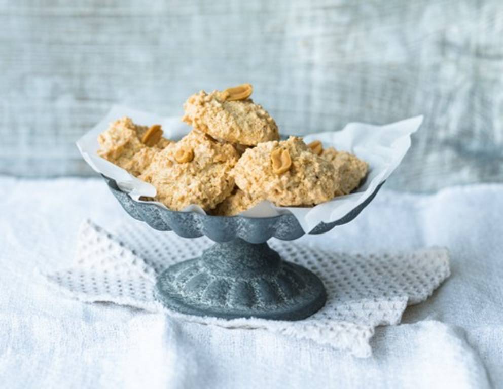 Wenn Sie die Erdnussmakronen richtig crunchy mögen, zerkleinern Sie die Erdnüsse im Blitzhacker nur grob. Übrigens können Sie auch Cashewnüsse für das Rezept verwenden.