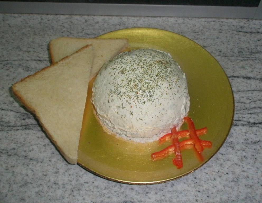 Der Frischkäseaufstrich schmeckt besonders gut auf eine Scheibe frisches Schwarzbrot.