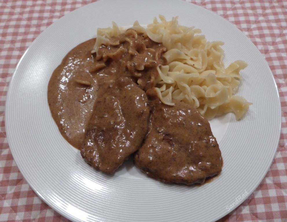 - Rindschnitzel aus dem Saft nehmen und den Saft etwas einkochen lassen.