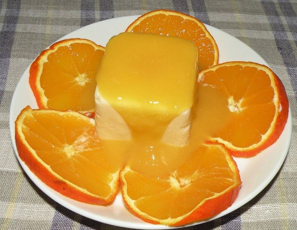 Dunkle geraspelte Schokolade darübergestreut oder Schokoblättchen als Deko passen sehr gut zur Orangen-Vanilleeiscreme.