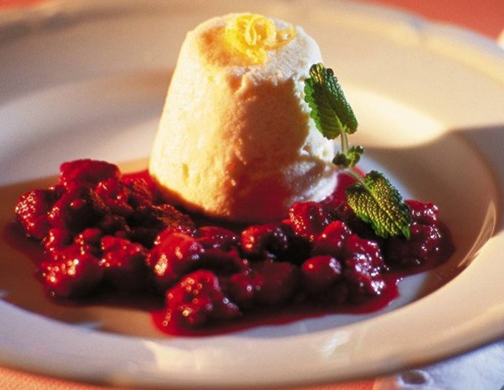 GARNITUREMPFEHLUNG : Heiße Himbeeren, Erdbeerragout (Erdbeermark mit Erdbeerstücken und Zucker verrühren), Hollerröster, Rumfrüchte od. gedünstetes Dörrobst