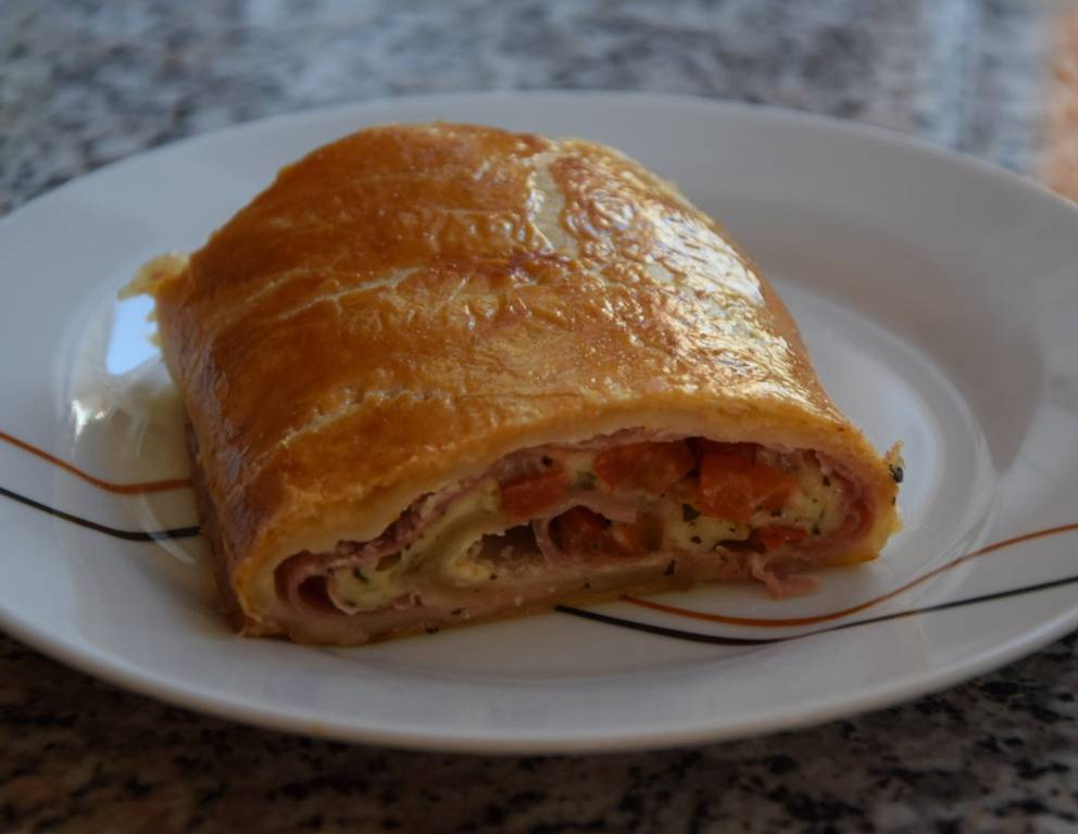 Die Blätterteigroulade ist ein toller Party-Snack und auch optimal zum Restlverwerten. Dazu passt eine Joghurtkräutersauce oder eine Knoblauchsauce.