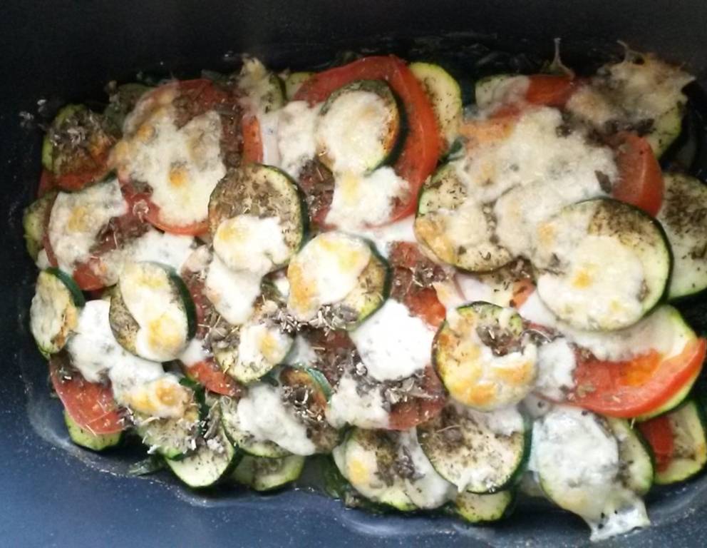 - Den Blattspinat leicht ausdrücken und mit Salz und Pfeffer würzen und Mozzarella würfeln bzw. klein reißen. Erst den Blattspinat in die Auflaufform geben, Zucchini und Tomatenscheiben abwechselnd darüber legen und mit Salz und Pfeffer würzen.
