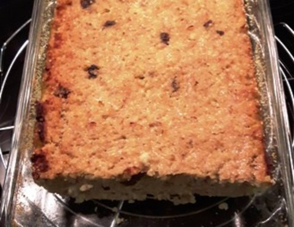 - Ausgekühlte Hirse ebenfalls beimengen und zuletzt den Eischnee unterheben. Auflaufform mit Butter und Brösel bzw. Backpapier auslegen. Masse einfüllen im vorgeheiztem Backofen bei 180 °C ca. 50 Minuten backen.