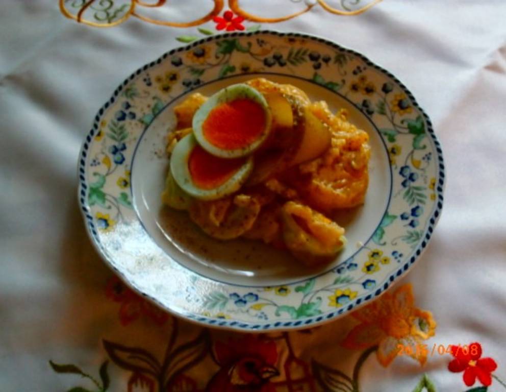 Saure Eier nach "Alt Wiener Art" noch beliebig evt. mit Speckwürfeln ergänzen.