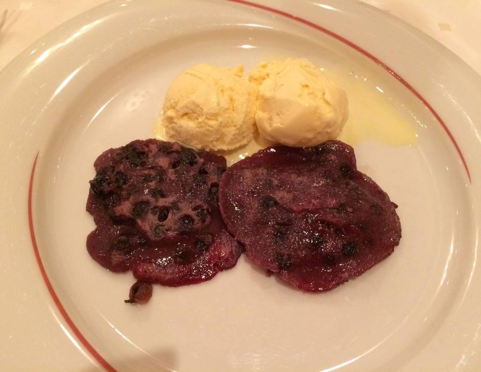 Zu den Heidelbeerpancakes passt Vanilleeis.