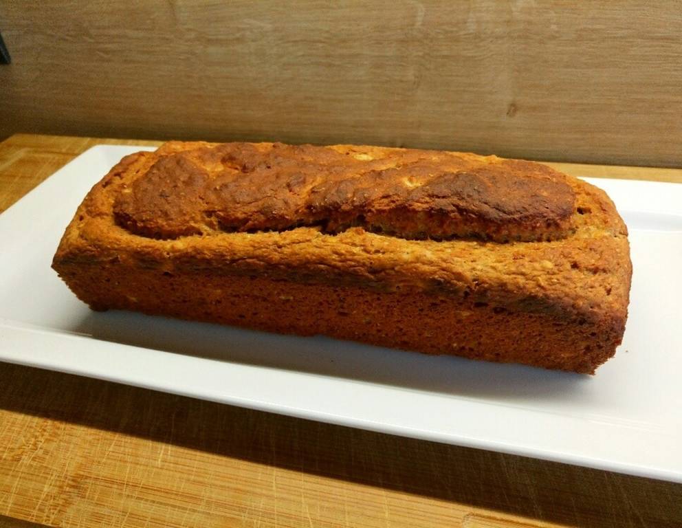 - Mehl mit Backpulver mischen und unter die Masse heben. Eine Kastenform mit etwas Butter oder Öl einfetten. Die Masse einfüllen und mit 180 Grad bei Ober-/Unterhitze 45 Minuten backen.
