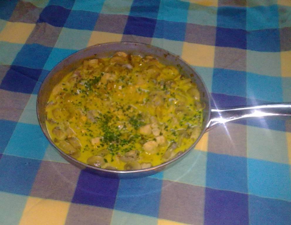 Das Hühnergeschnetzelte mit Kokosmilch statt Schlagobers verfeinern. Dann wird es zu einem Curry.