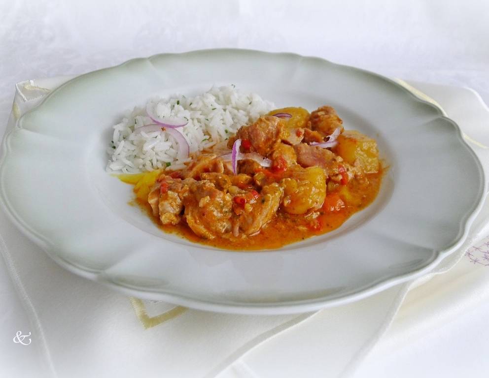 Das Ragout mit einem Klecks Sauerrahm verfeinern. Statt Karotten passen rote Paprika ebenfalls gut dazu.