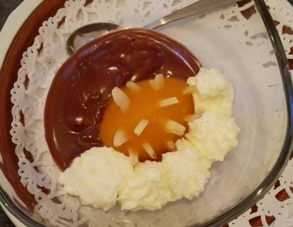 Statt der Marille passt auch anderes Obst zum Schokopudding, dass man als Igel verzieren kann.