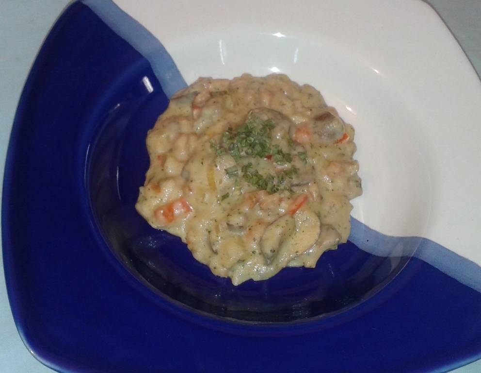 - Danach die Hafer Cuisine in die Pfanne leeren, umrühren und auch das Gemüse hinzufügen. Noch etwas umrühren und anschließend servieren.