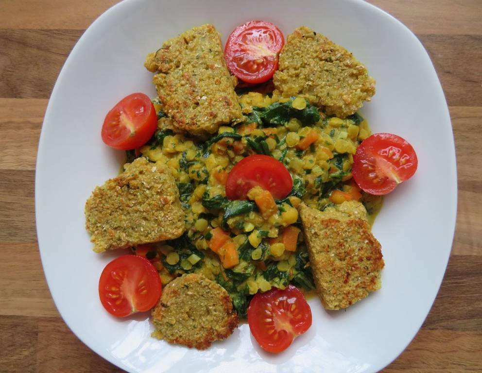 Das Linsencurry mit Bärlauch und Falafelschnitten kann Alternativ auch mit Kokosöl zubereitet werden.