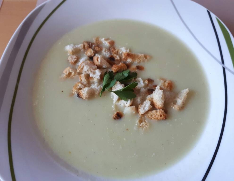 - Danach mit einem Pürierstab pürieren, Schuss Cremefine dazu und eventuell nochmals mit Salz und Pfeffer abschmecken.