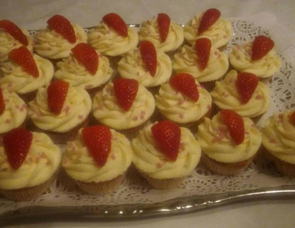 Die Erdbeer-Schokoladen Cupcakes können auch mit dunkler Schokolade zubereitet werden, allerdings sehen sie mit weißer Schokolade schöner aus.