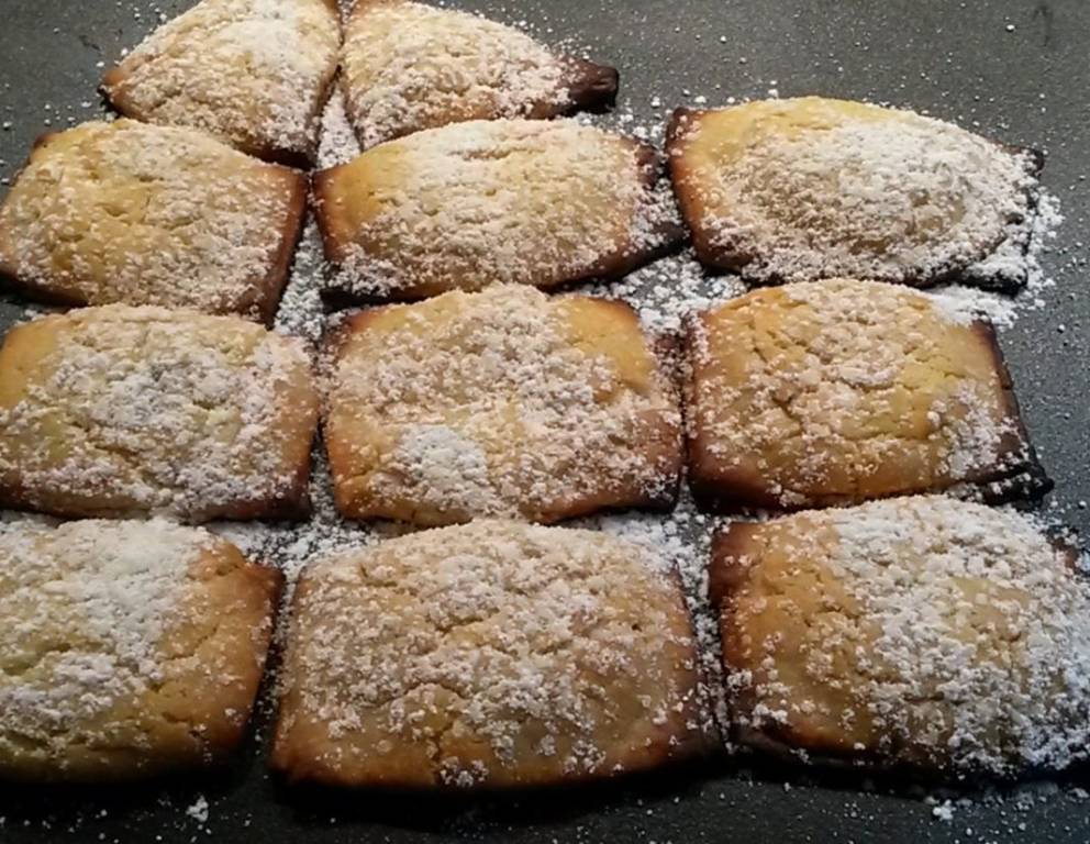 - Ränder mit Wasser bepinseln, je einen Teelöffel Marmelade darauf geben und zusammen klappen. Auf ein beschichtetes Blech legen und im auf 200 °C vorgeheizten Rohr etwa 20 Minuten goldgelb backen.